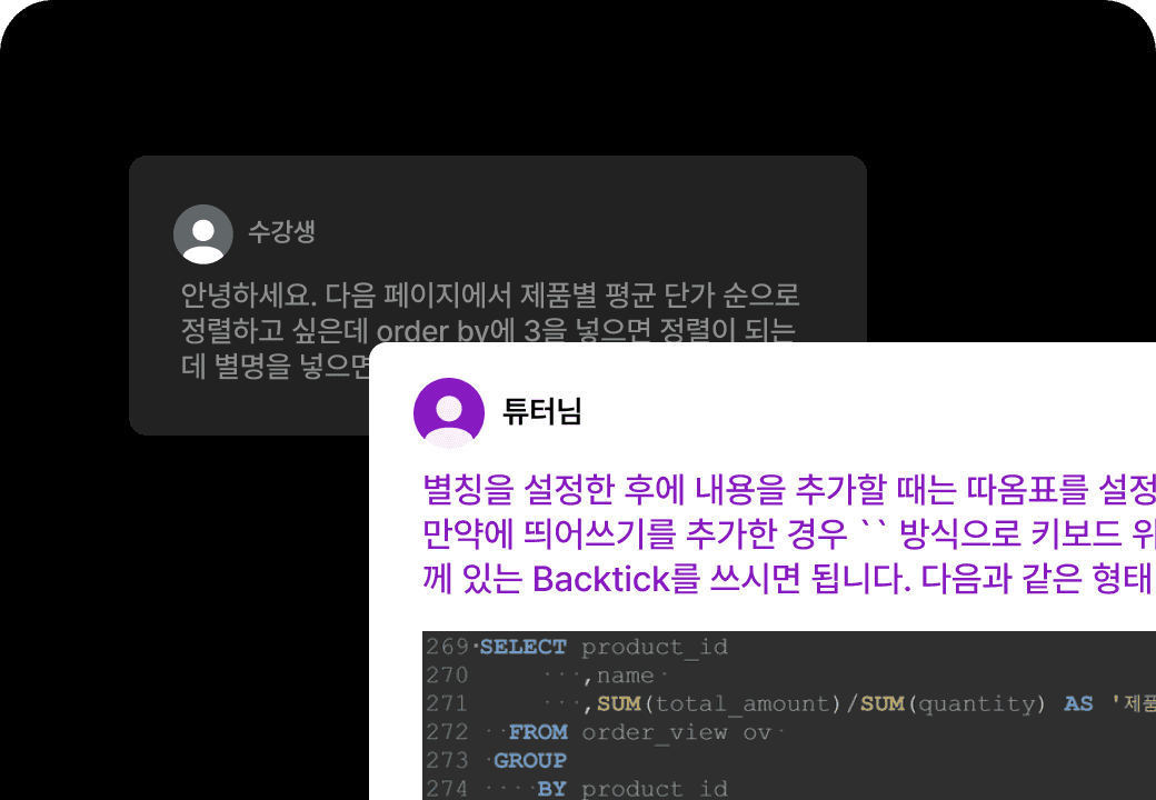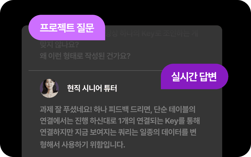 튜터의 밀착 케어와 함께 실무 기반 프로젝트